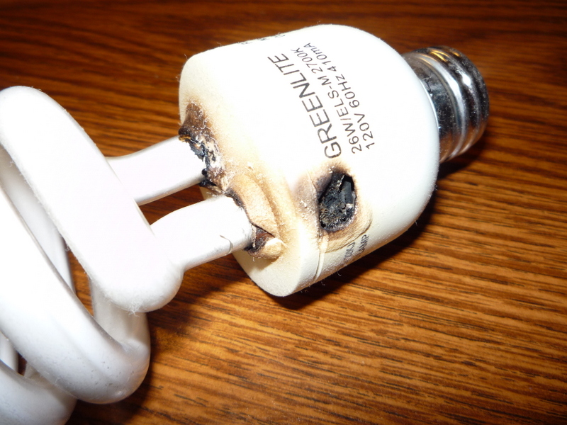 先日の充電器に続き、今度は蛍光ランプが燃えました。